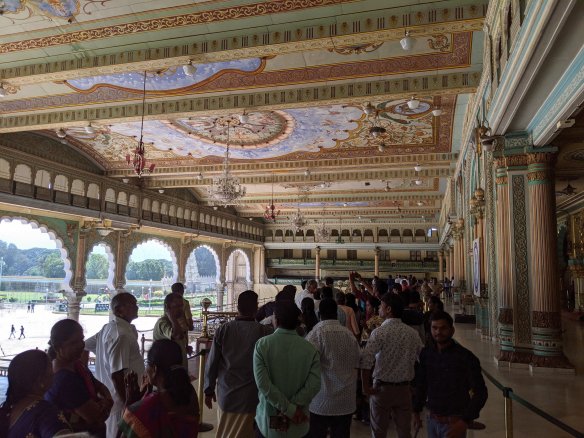 Our day had begun earlier with breakfast in the luxurious Radisson Blu Hotel, surely the best hotel in Mysore. We check out and hit the road, back into the melee of cars, bikes and cows. As we head out of the city the traffic gradually thins out and becomes less frenetic, although this is still a busy road. The buildings give way to fields of rice, palm trees, sugar cane and many other crops. The occasional hill in the distance reminds us of Wiltshire, except for the palms of course.